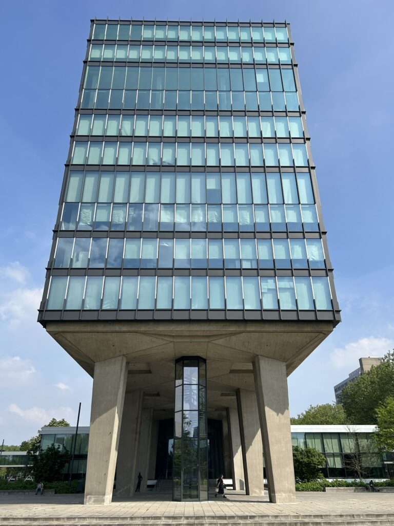 Like many urban centers in the Netherlands, Eindhoven experienced massive devastation of its architecture and infrastructure during WWII. The reconstruction of the postwar years was supported by several major drivers: the Philips Electronics Company (founded in the 19th century and headquartered overseas during the war), and TU Eindhoven, founded in 1956. While some Philips structures survived the war and remain standing, notably the Lichttoren Eindhoven (AKA the “Light Bulb Factory”) and Philips Stadion, the postwar years saw the company expand their footprint within the city via new structures for both industrial production and housing for workers.