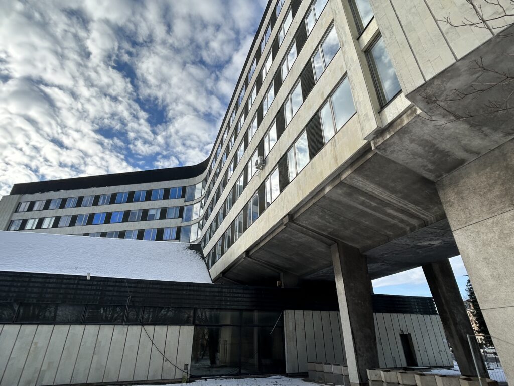 Begun in the late 1980s, this unfinished high-rise was meant to integrate Soviet Latvia into global commerce. The unique three-winged concrete and steel structure, planned at 30 stories, was never completed after independence. While its rectilinear frame and stripped-down facade reflect international ambitions, it lacked the national identity of projects such as the National Library (see below), and now stands abandoned behind a makeshift chain-link fence.