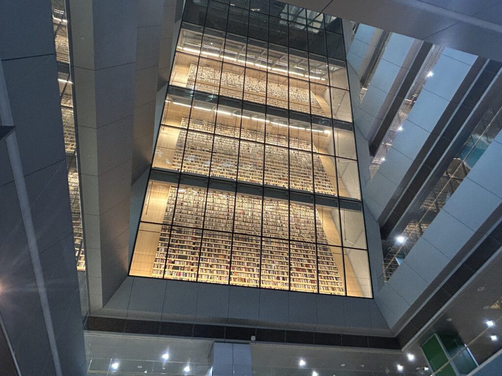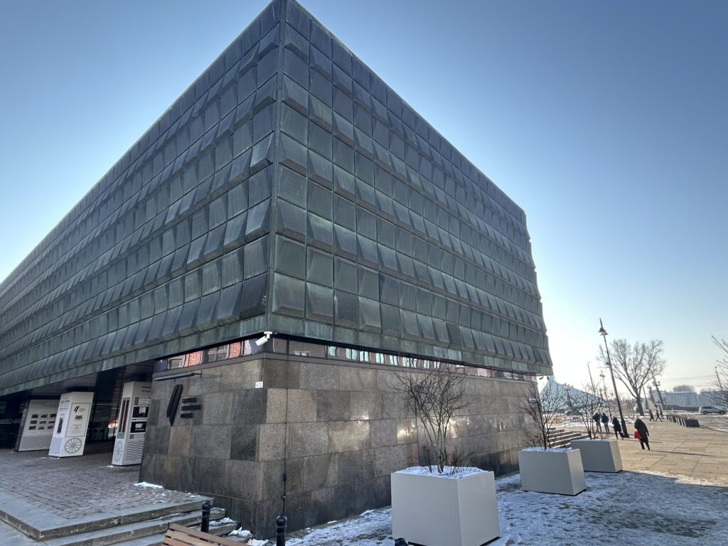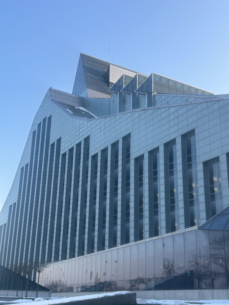 Designed in 1989 by Gunnar Birkerts, delayed by the historical events of that year, and finally completed in 2014, the library bridges Soviet-era planning and national revival. Its angular glass and steel form draws from Latvian folklore and late modernist design, referencing the folk myth of a glass mountain. Though realized post-independence, it is a triumph of monumentality both from outside and from within, where from the massive atrium one can see a multi-story bookshelf rising to the heights (aided by some strategically-placed mirrors).