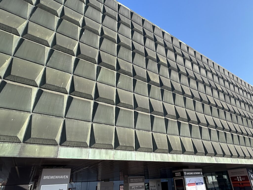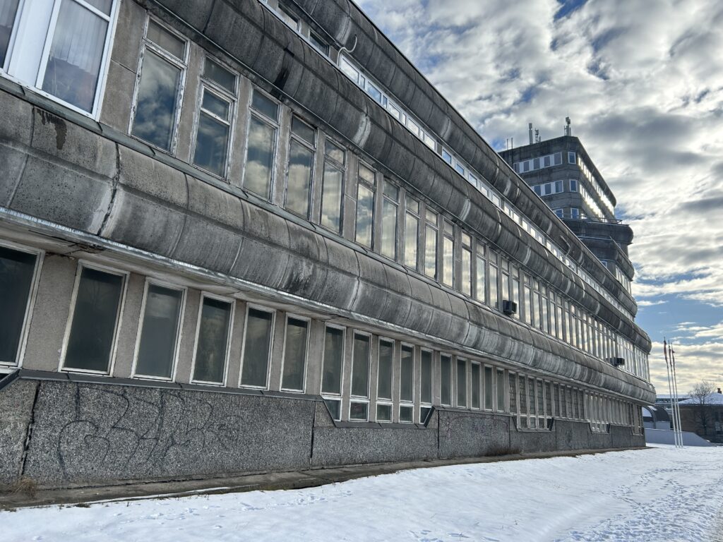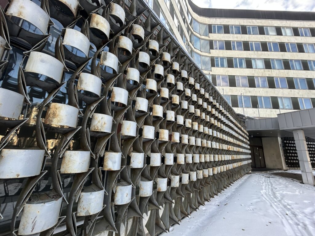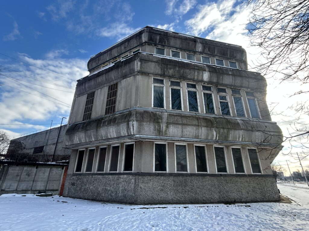 Originally built in the early 20th century and expanded during the 1950s-60s, this complex was central to Latvia’s Soviet industrial network. The massive edifice features minimal ornamentation but a surprisingly intricate structure, with diagonals and overhangs breaking up the rectilinear grid, and an entry tunnel, added later, that could generously be called an architectural oddity. Today, parts of the site are abandoned while others are still in use, with its overall shell largely intact but deteriorating.