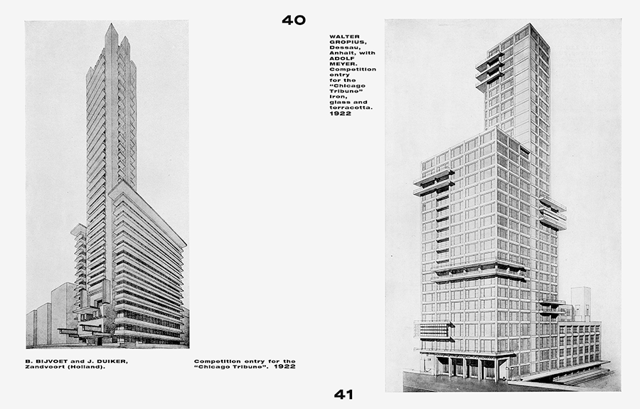 Scale is less important than form: between soaring skyscrapers are single-family homes, including Gropius’ own Dessau houses as well as domestic-scale entries from Le Corbusier and others. Less important, too, is whether the building exists as a building or merely a model; rather than making the book feel unfinished, the numerous architects represented only by illustrations lend it a sense of urgency and dynamism, laying out a bold vision for the city of the twentieth century.