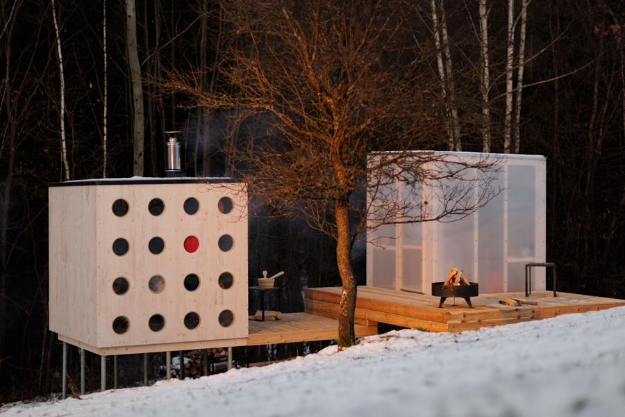 Saunas are, by nature, an experience of self-fulfilling minimalism: at sufficient temperatures, adornments become annoyances, and excesses become unbearable. Heat pairs well with silence, bare walls and floors, and subdued scents of steam and birchwood. As spaces built to effectively hold and distribute heat, saunas-as-architecture lend themselves to the straight lines and simple geometries of modernism, with any variants to the external shape necessarily deferential to the core functionality of the interior.